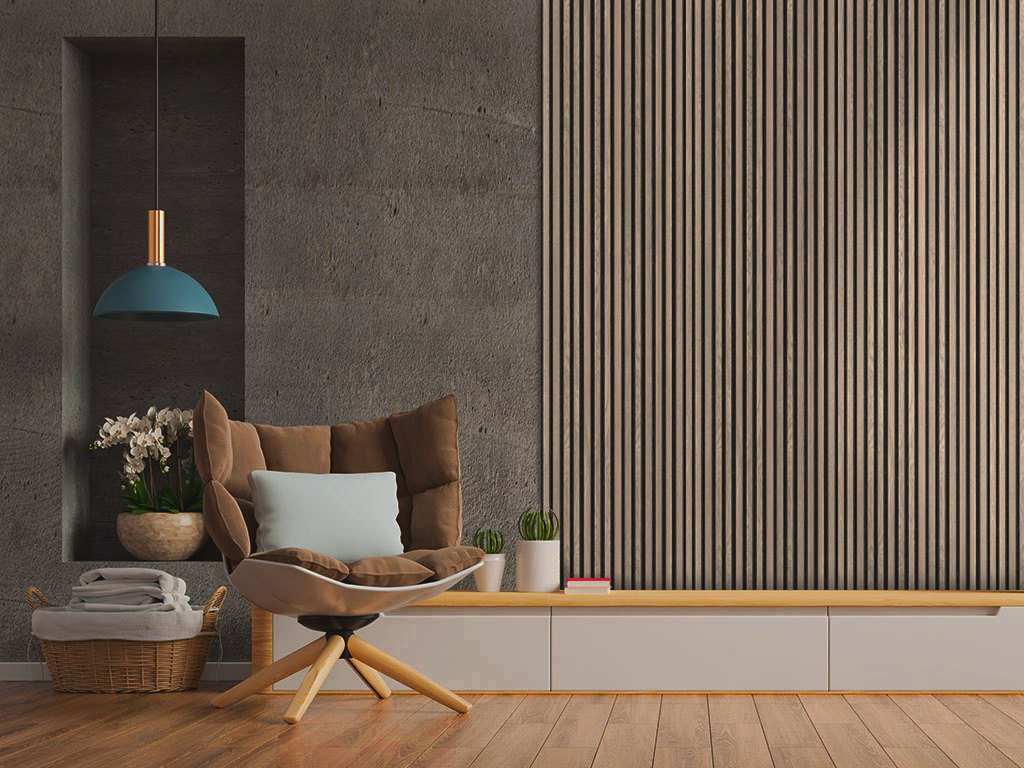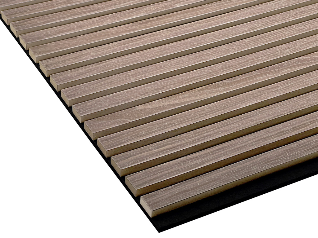Akustikpaneele dienen der Gestaltung von Wänden und Decken. Zusätzlich stehen die akustischen Eigenschaften der Produkte im Vordergrund. Die Paneele haben eine schwarze Trägerplatte aus recyceltem, schallabsorbierenden Polyester, auf denen Lamellen (MDF) angebracht sind, die mit astfreier Eiche furniert sind.