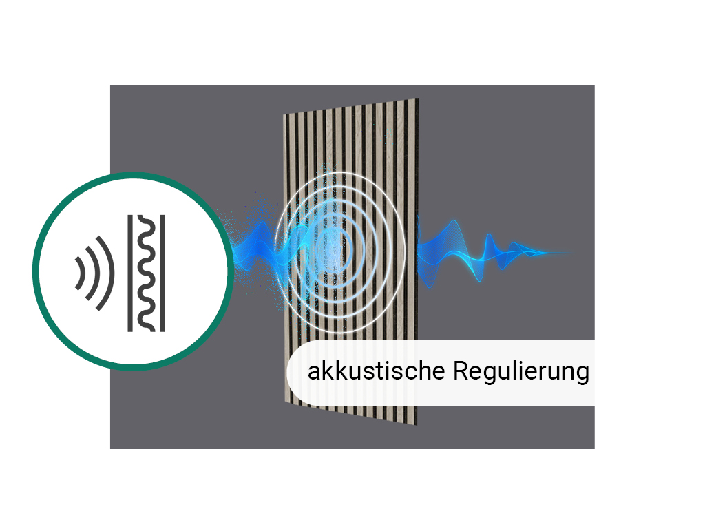 - Die Beplankung einer kompletten Zimmerwand mit Akustikpaneelen (22 mm) bewirkt eine Schallreduktion um ca. 25%, abhängig von weiteren Faktoren*