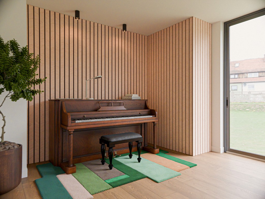 Die Akustikpaneele können an Decken oder Wänden angebracht werden und eignen sich sogar für Feuchträume. Die Montage der Paneele ist relativ unkompliziert: du kannst sie entweder kleben oder anschrauben.