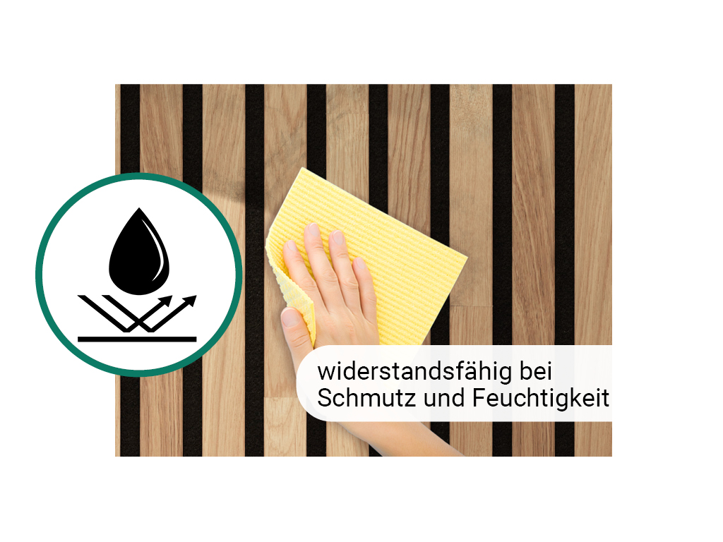 Bei den Lamellen handelt es sich um hochwertige Massivholzlamellen, die dank der Mattlackierung eine einfache Reinigung und Pflege der Paneele ermöglichen. Auch die Montage der Akustikpaneele ist relativ unkompliziert: Du kannst sie entweder kleben oder anschrauben.