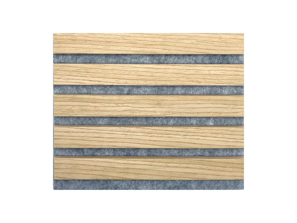 Die Paneele bestehen aus einer einseitig furnierten Trägerplatte aus schwarzem Filz, auf der 6 mm starke Filz-Lamellen angebracht sind. Diese besondere Struktur ermöglicht eine optimale akustische Regulierung und Nachhalldämpfung.