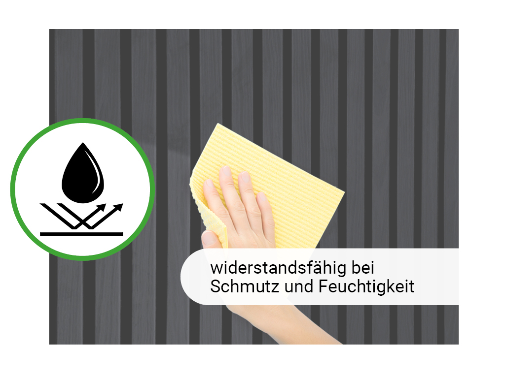 Ideal für Wände und Decken in Wohnräumen. Da die Paneele feuchtraumgeeignet sind, machen sie somit auch in Bad und Küche eine hervorragende Figur.