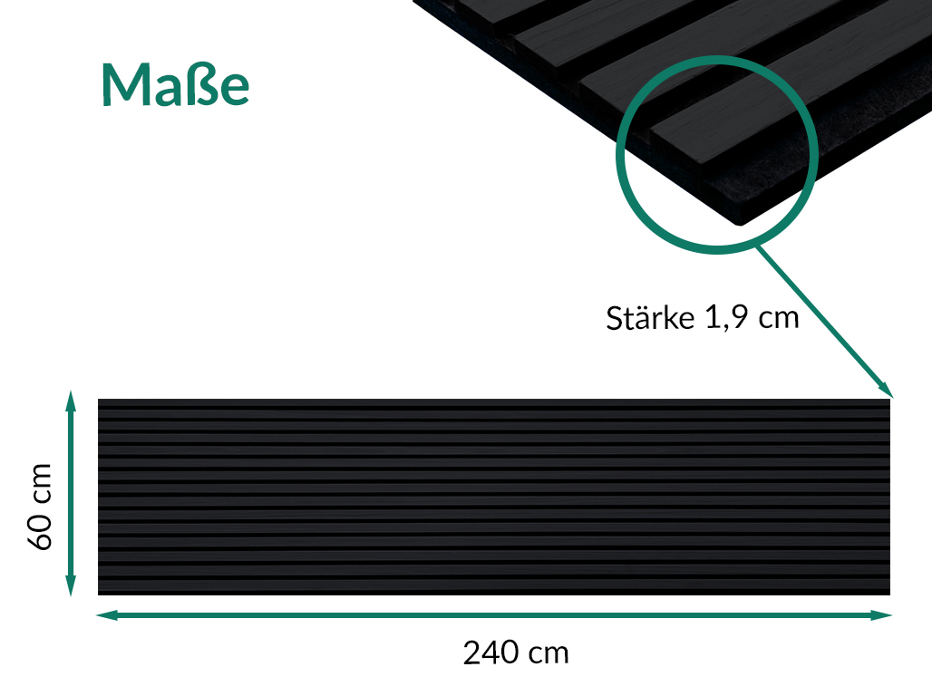Lieferumfang: 1 x Akustikpaneele 240 x 60 cm (entspricht 1,44 qm)