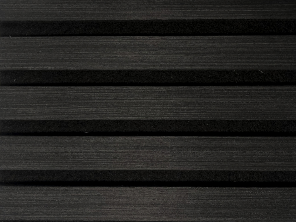 Die Paneele bestehen aus einer dreiseitig furnierten Trägerplatte aus schwarzem Filz, auf der 9 mm starke Filz-Lamellen angebracht sind. Diese besondere Struktur ermöglicht eine optimale akustische Regulierung und Nachhalldämpfung.