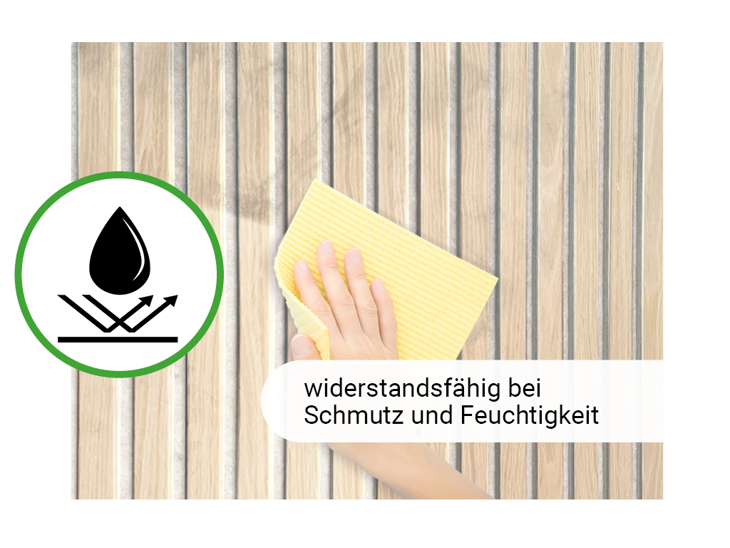 Ideal für Wände und Decken in Wohnräumen. Da die Paneele feuchtraumgeeignet sind, machen sie somit auch in Bad und Küche eine hervorragende Figur.