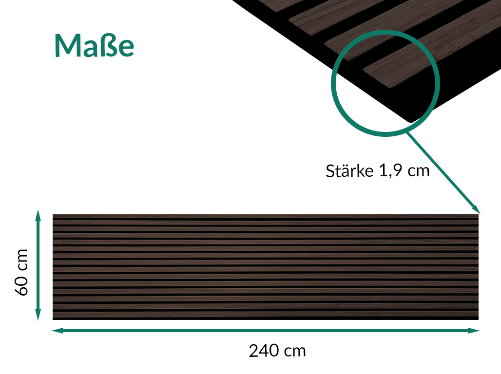 Lieferumfang: 1 x Akustikpaneele 240 x 60 cm (entspricht 1,44 qm)