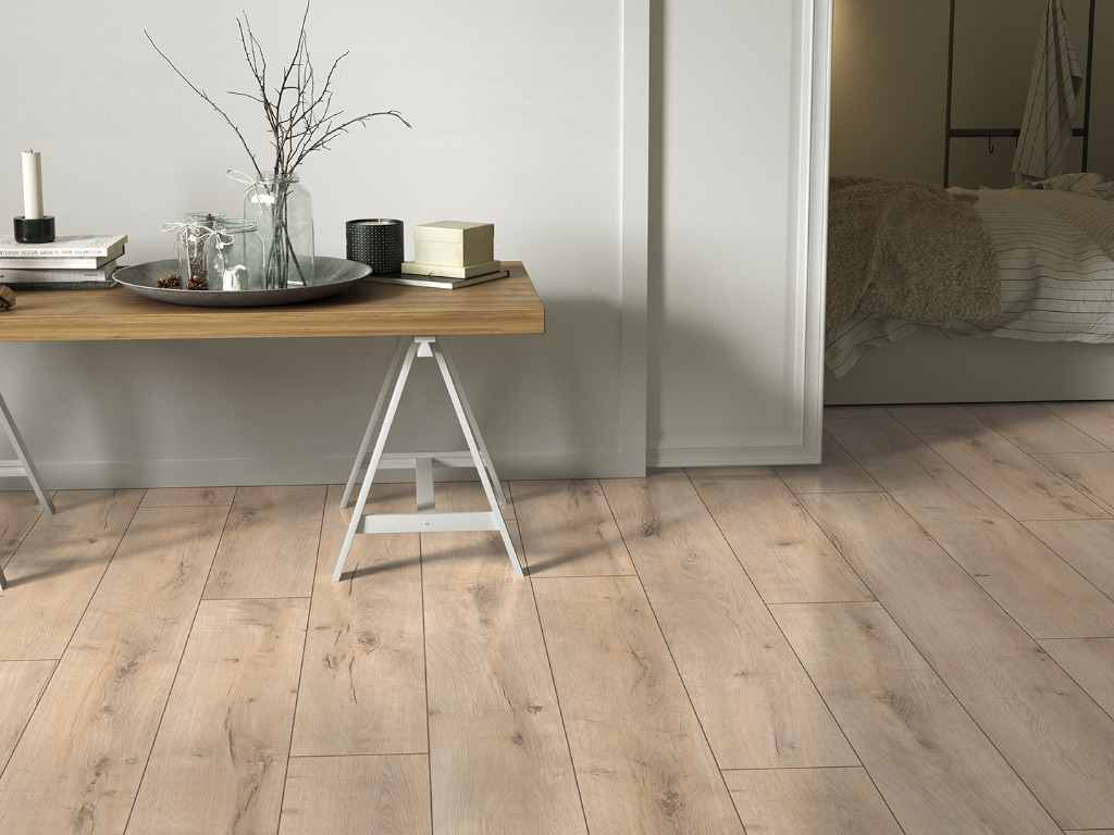 Mit einer Stärke von 8 mm ist dieses Laminat für eine leichte Nutzung im gewerblichen Bereich ausgelegt. Dank der Klickverbindung megaloc lässt sich der Boden ganz einfach schwimmend verlegen.
