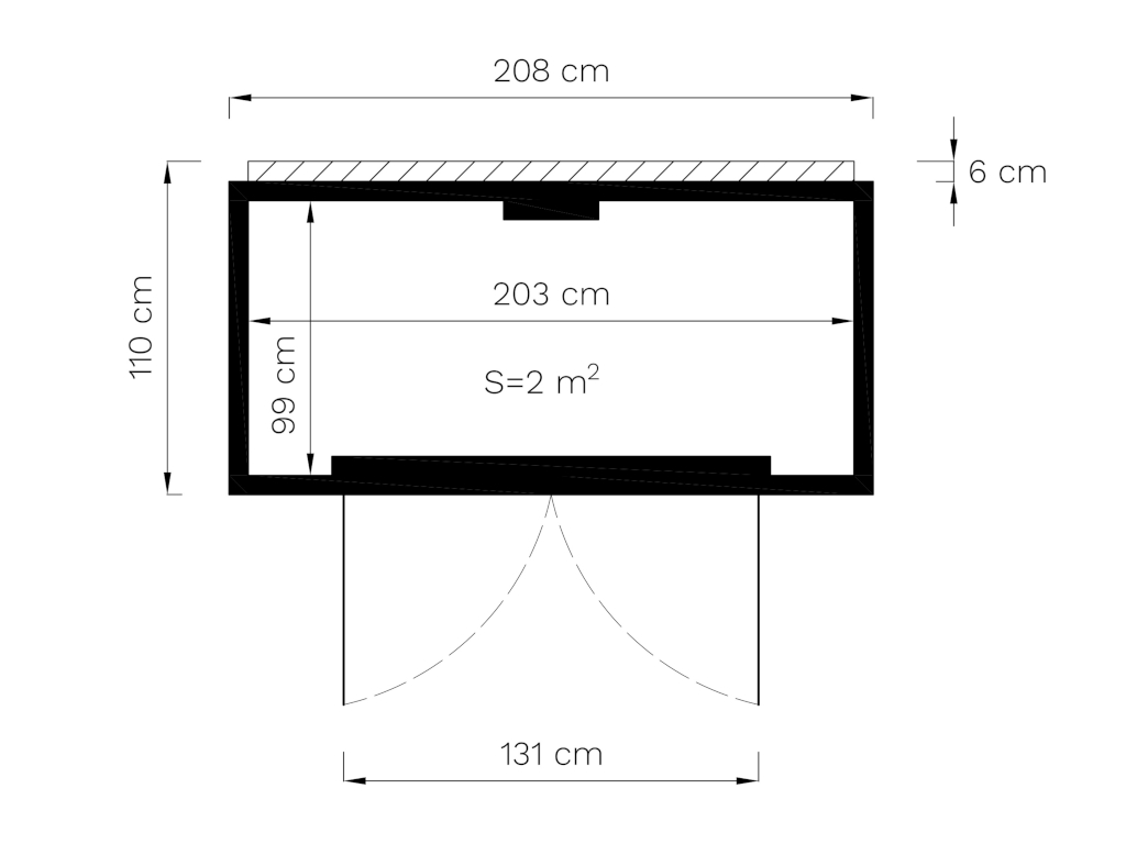 | Außenmaß inkl. Dachüberstand (B x T): | 208 x 110 cm |