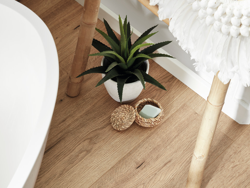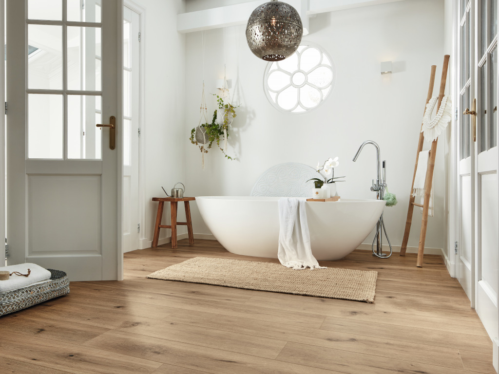 8 mm stark, 5G Dry Klick-Verbindung, integrierte Dämmung, Feuchtraumgeeignet, Porenstruktur, 4-seitige Microfase