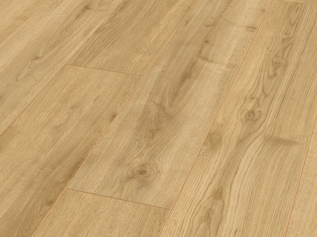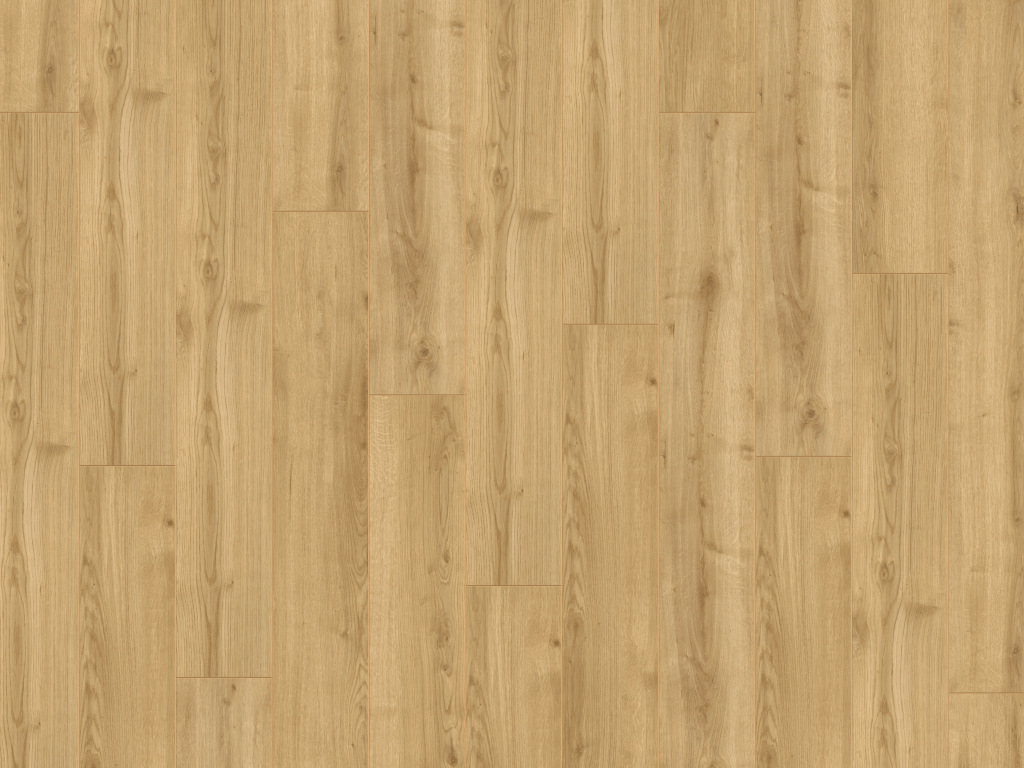 Das Dekor in authentischer Eichenholzoptik vermittelt fühlbare Wärme und Behaglichkeit. Landhausdielen besitzen mit ihrer Ein-Stab-Optik einen natürlichen und rustikalen Look, der jeden Raum gemütlich wirken lässt. Die an vier Seiten umlaufende Fase strukturiert das Verlegebild und verleiht ihm ein gleichmäßiges Muster. Dank der strukturierten Oberfläche entsteht optisch und fühlbar der Eindruck eines echten Holzbodens.