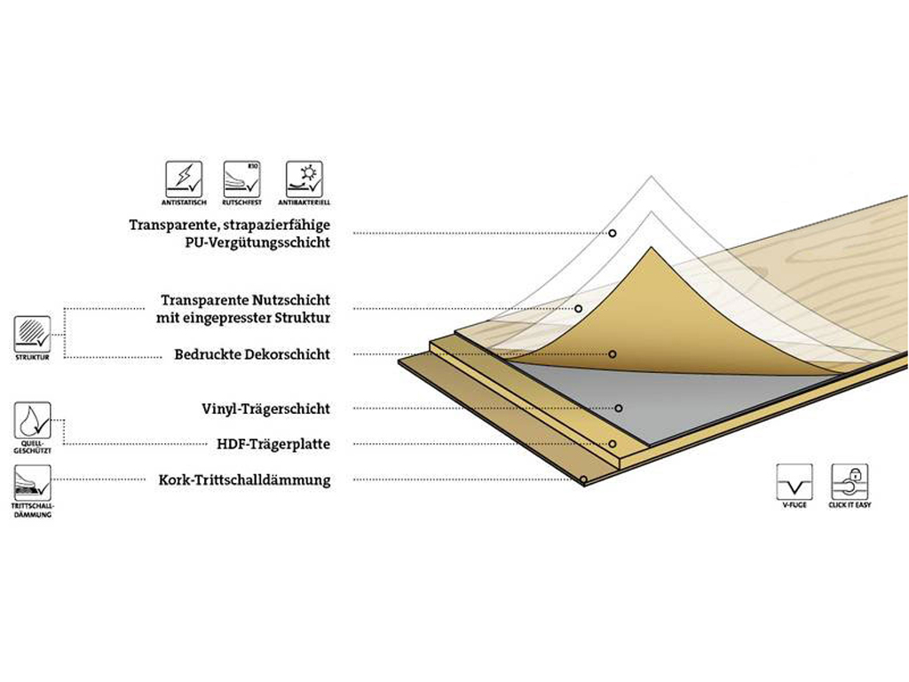 - CLICKitEASY-Klickverbindung: besonders komfortable und einfache Montage für extrem schnelle und saubere Verlegung