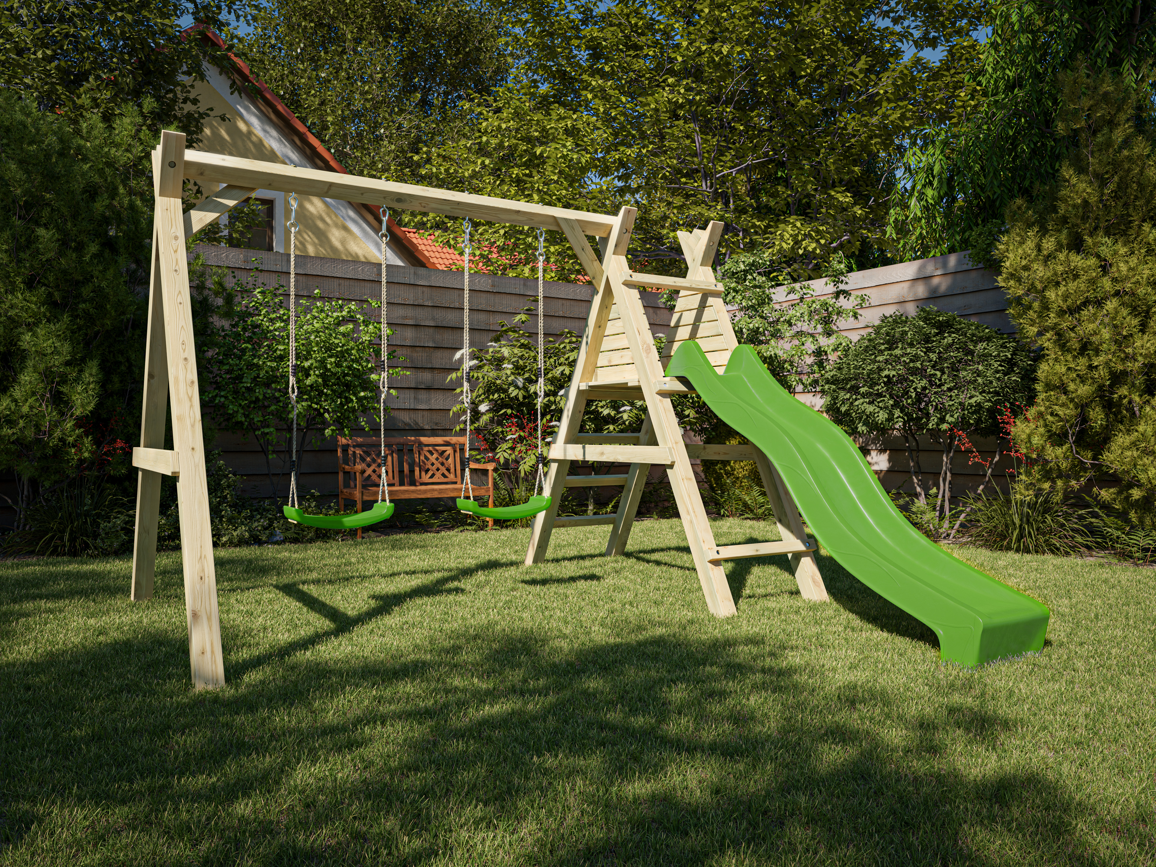 Weiterhin sind in diesem Sparset bereits zwei grüne Schaukelsitze enthalten.