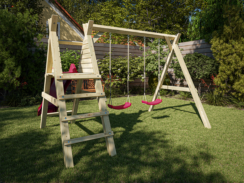 Weiterhin sind in diesem Sparset bereits zwei pinke Schaukelsitze enthalten. - Schnelle Montage