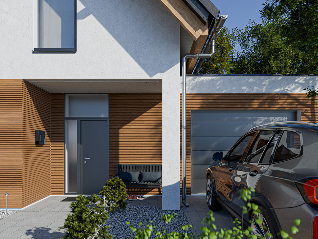 Fassadenverkleidung Bambus lackiert Rhombusprofil