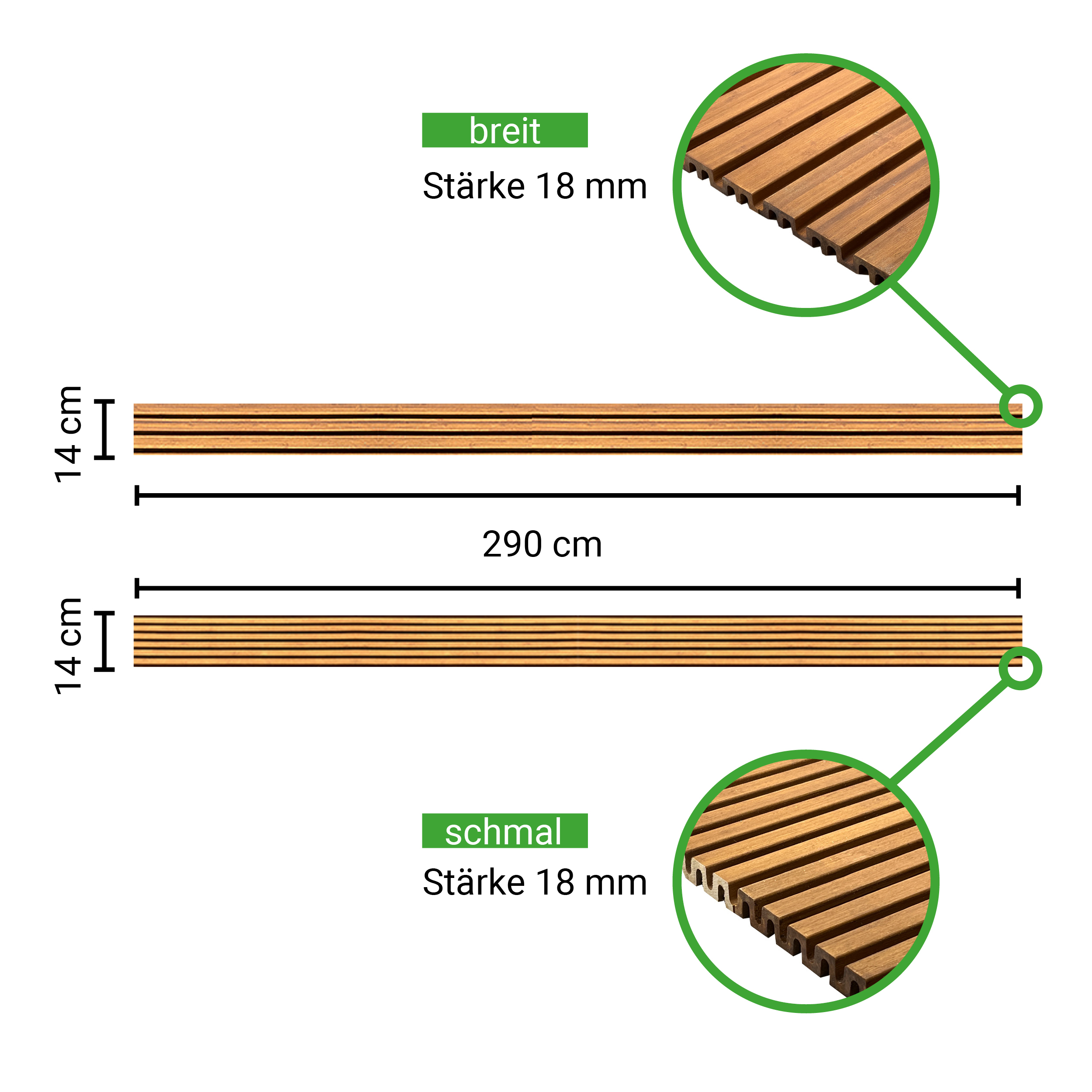 Stärke/Breite 18 x 140 mm, Länge 2,9 m, glatt gehobelt