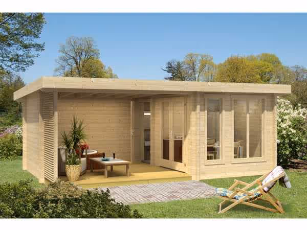 Gartenhaus Blockbohlenhaus "Aster 2 B" 28 mm Pultdach Zweiraumhaus