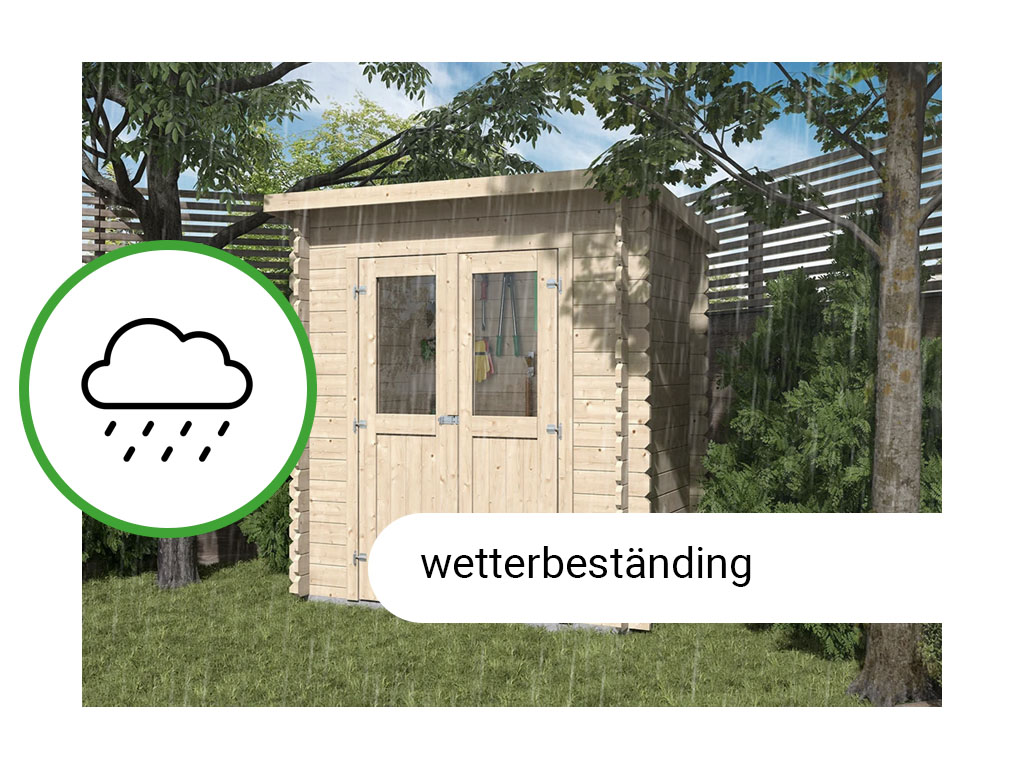 Mit einer Wandstärke von 28 mm ist das robuste Gartenhaus der perfekte Aufenthaltsort im Sommer. Aufgrund wärmedämmender Eigenschaften des hochwertigen Holzes ist es im Inneren des Gartenhauses während der prallen Sommerhitze 3-5 Grad kühler, in den kälteren Abendstunden 3-5 Grad wärmer als draußen. So hast Du im heißen Sommer immer ein schattiges Plätzchen. Dank der soliden Wandstärke verwittert das Holz nicht so schnell und bleibt langlebig und stabil.