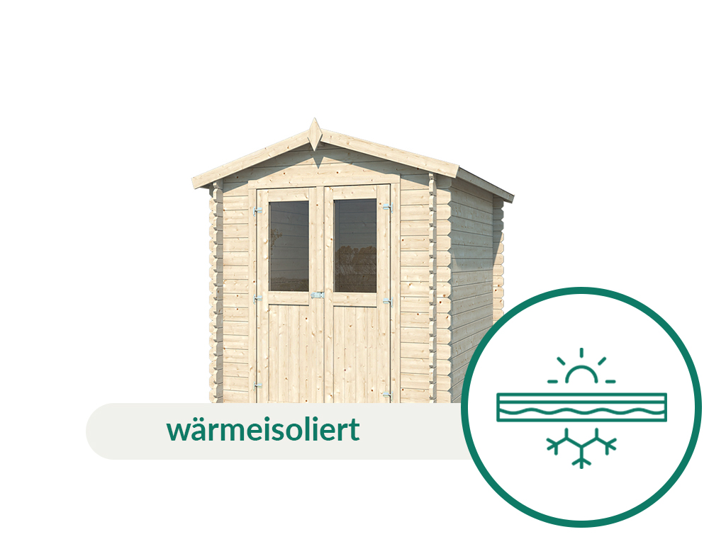 Mit einer Wandstärke von 28 mm ist das robuste Gartenhaus der perfekte Aufenthaltsort im Sommer. Aufgrund wärmedämmender Eigenschaften des hochwertigen Holzes ist es im Inneren des Gartenhauses während der prallen Sommerhitze 3-5 Grad kühler, in den kälteren Abendstunden 3-5 Grad wärmer als draußen. So hast Du im heißen Sommer immer ein schattiges Plätzchen. Dank der soliden Wandstärke verwittert das Holz nicht so schnell und bleibt langlebig und stabil.