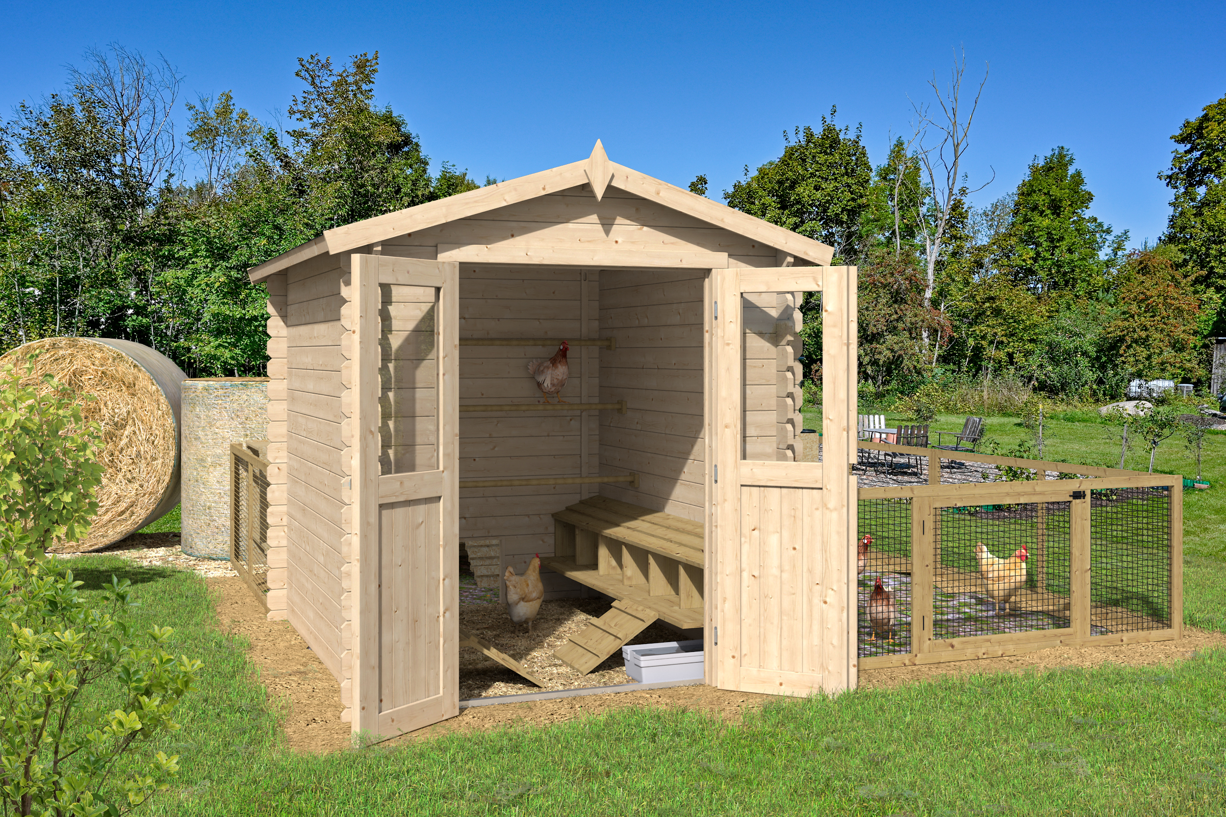- Der Dachbelag ist nicht mit im Lieferumfang enthalten. Wir empfehlen die Dacheindeckung mit Schindeln (2 Pakete benötigt).