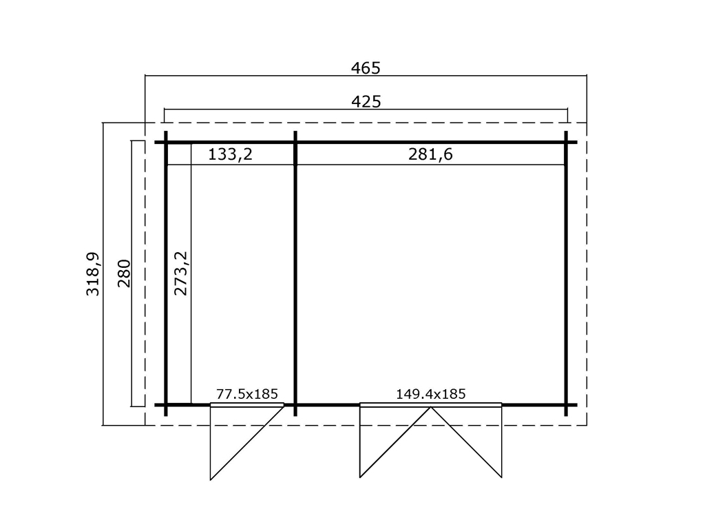 | Außenmaß inkl. Dachüberstand (B x T): | 465 x 318,9 cm |