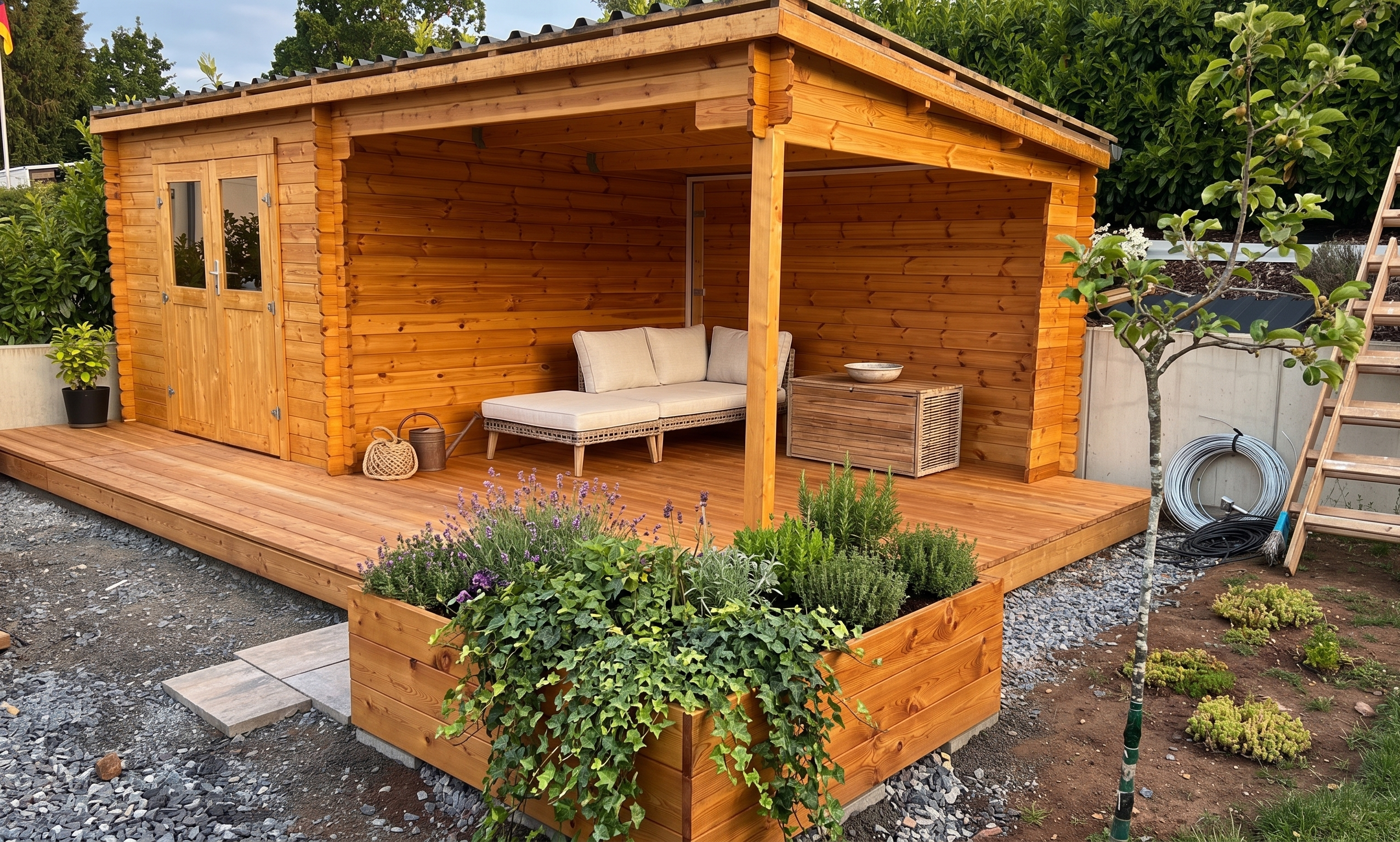 | Lieferumfang: | Gartenhaus, detaillierte Montageanleitung, Anbau |