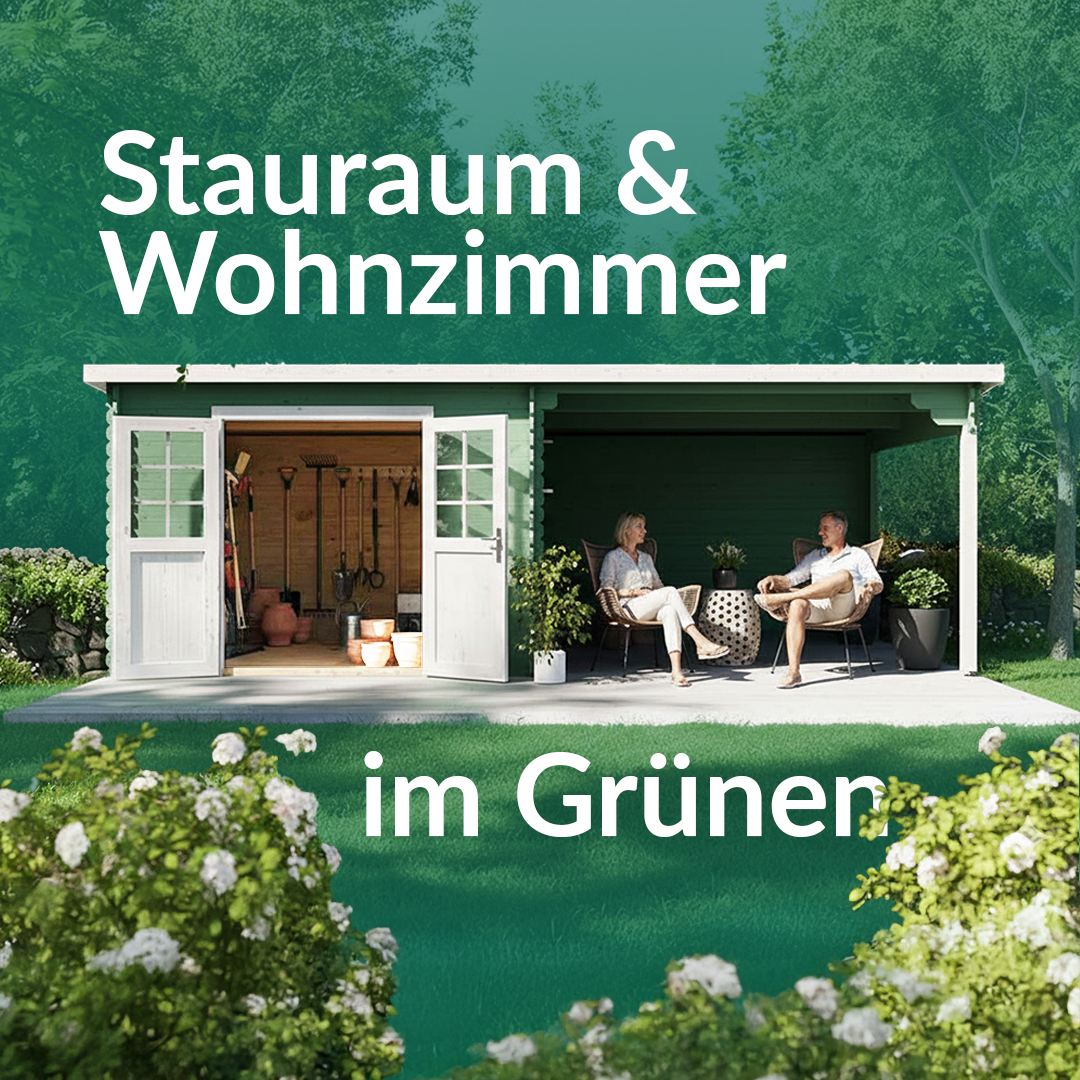 Für mehr Raum und vielfältige Nutzungsmöglichkeiten sorgt dieses Gartenhaus mit Anbaudach. Das großzügig geschnittene Anbaudach ermöglicht es, den Gartenalltag in vollen Zügen im Freien genießen zu können – geschützt vor Sonne, Wind und Regen. Der Platz unter dem Dach kann als gemütliche Terrasse zum Sitzen, Spielen oder Werkeln bei jedem Wetter genutzt werden. Alternativ eignet es sich auch als optimaler Unterstellplatz für zahlreiche Gartengeräte.