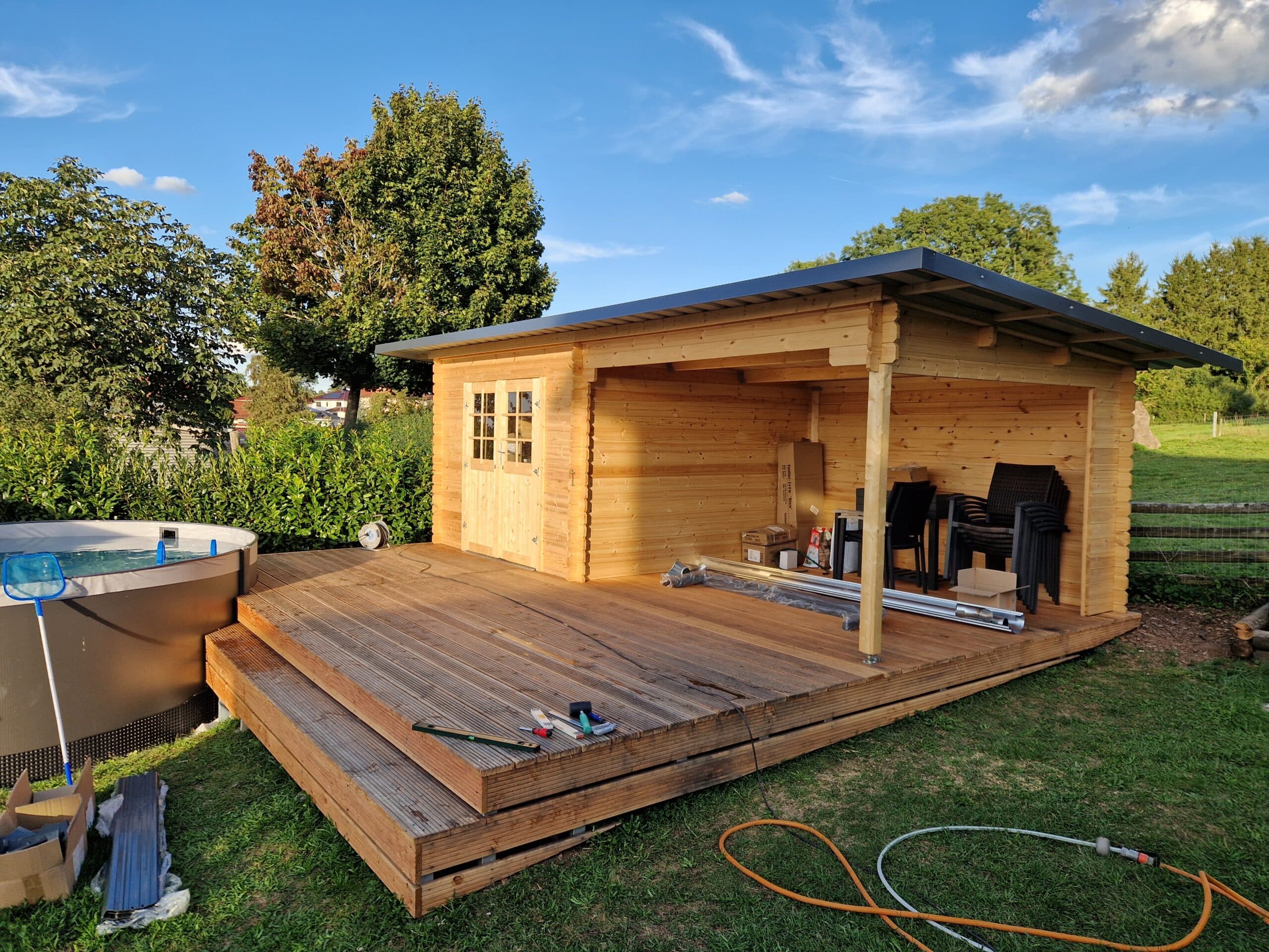 Der Aufbau ist an einen Tag zu schaffen. (Ohne Dachbelag ) Preis / Leistubg stimmt