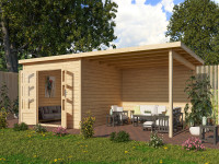 Gartenhaus Blockbohlenhaus CA2978 28 mm naturbelassen mit 4 m Anbau