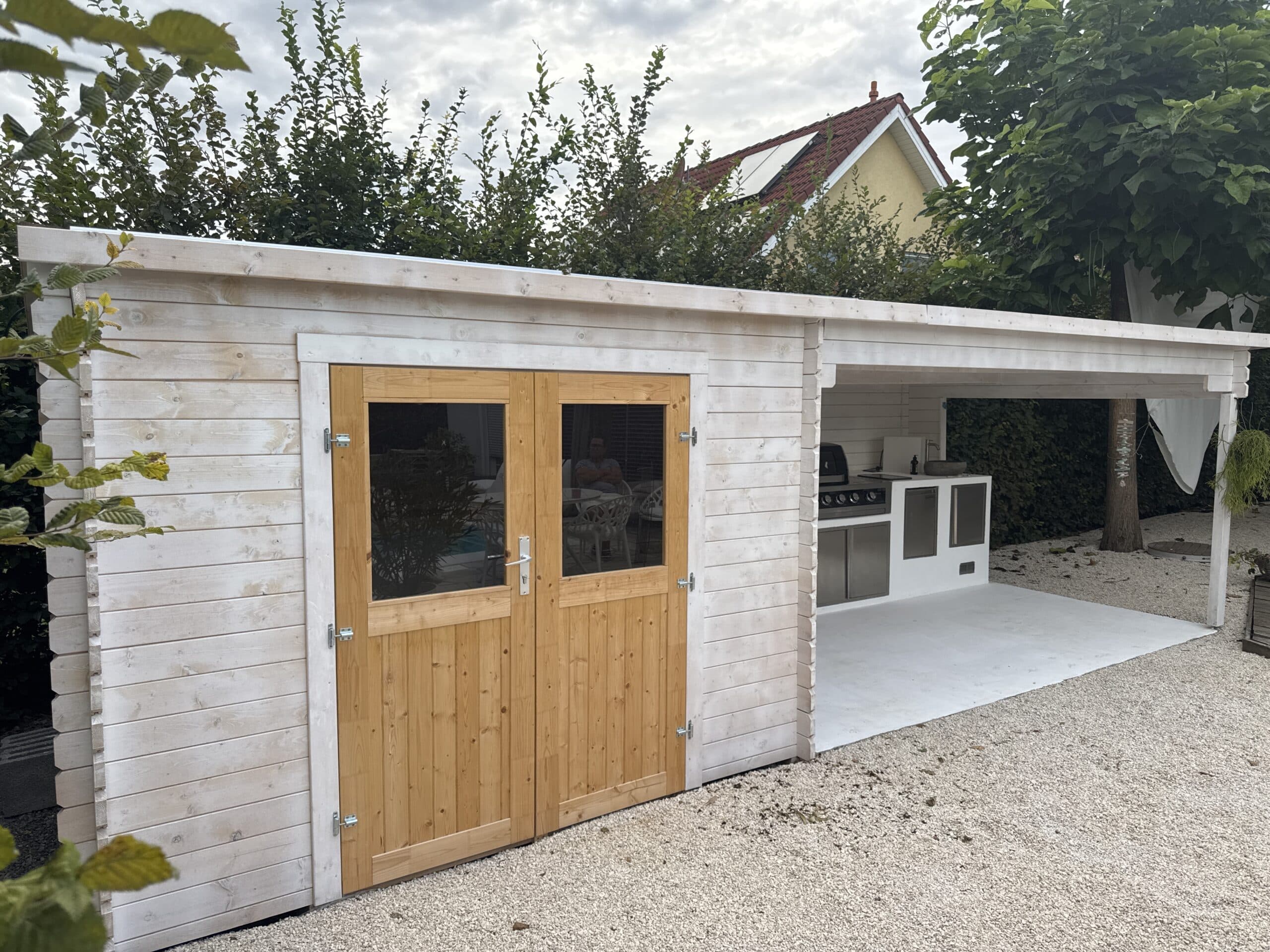 Das naturbelassene Holz sorgt für ein natürliches und zeitloses Aussehen. Außerdem ermöglicht Dir das unbehandelte Holz, das Äußere des Gartenhauses ganz nach Deinen eigenen Wünschen zu gestalten.