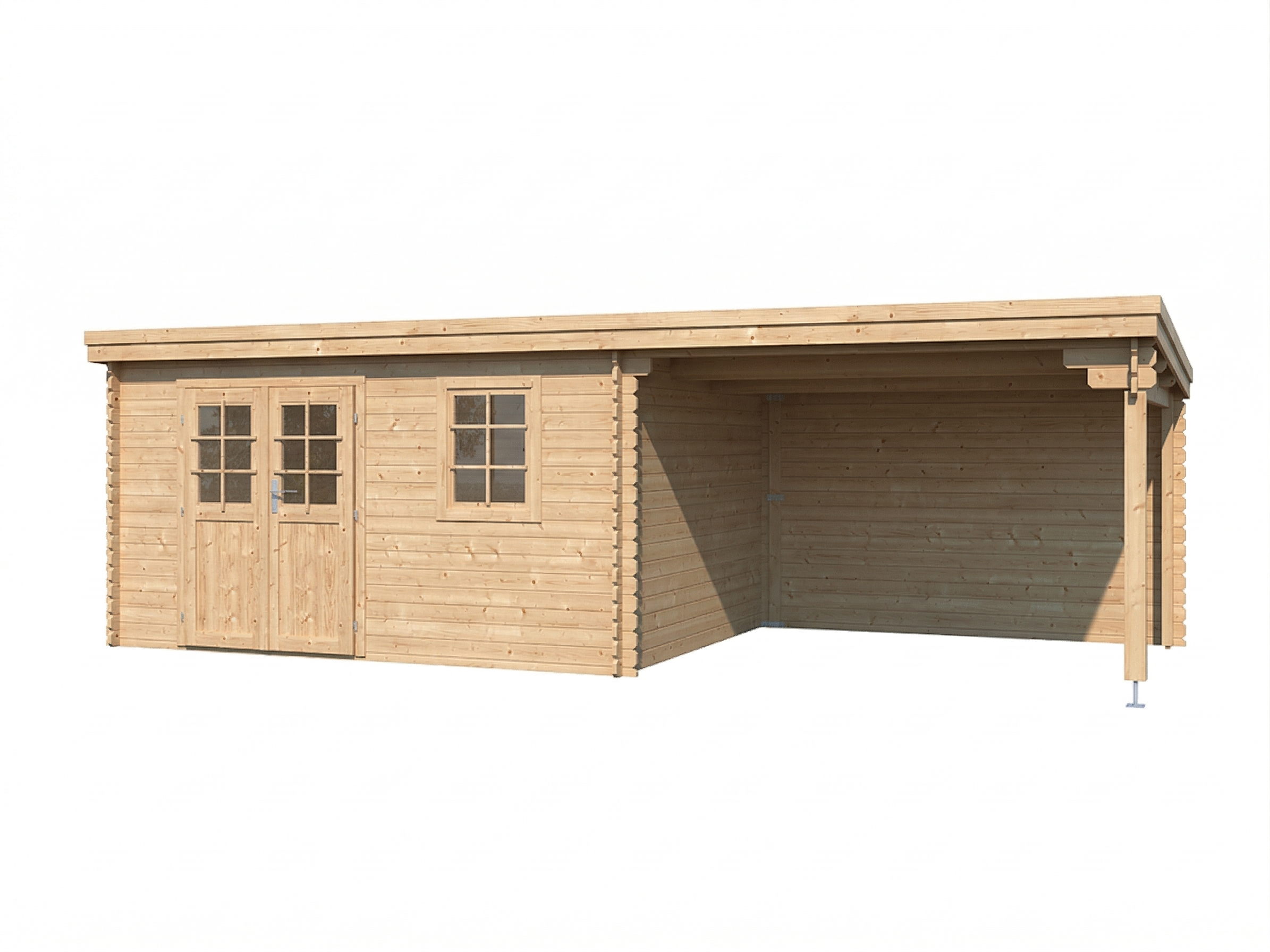 Gartenhaus Blockbohlenhaus CA2987 28 mm naturbelassen mit 3 m Anbau