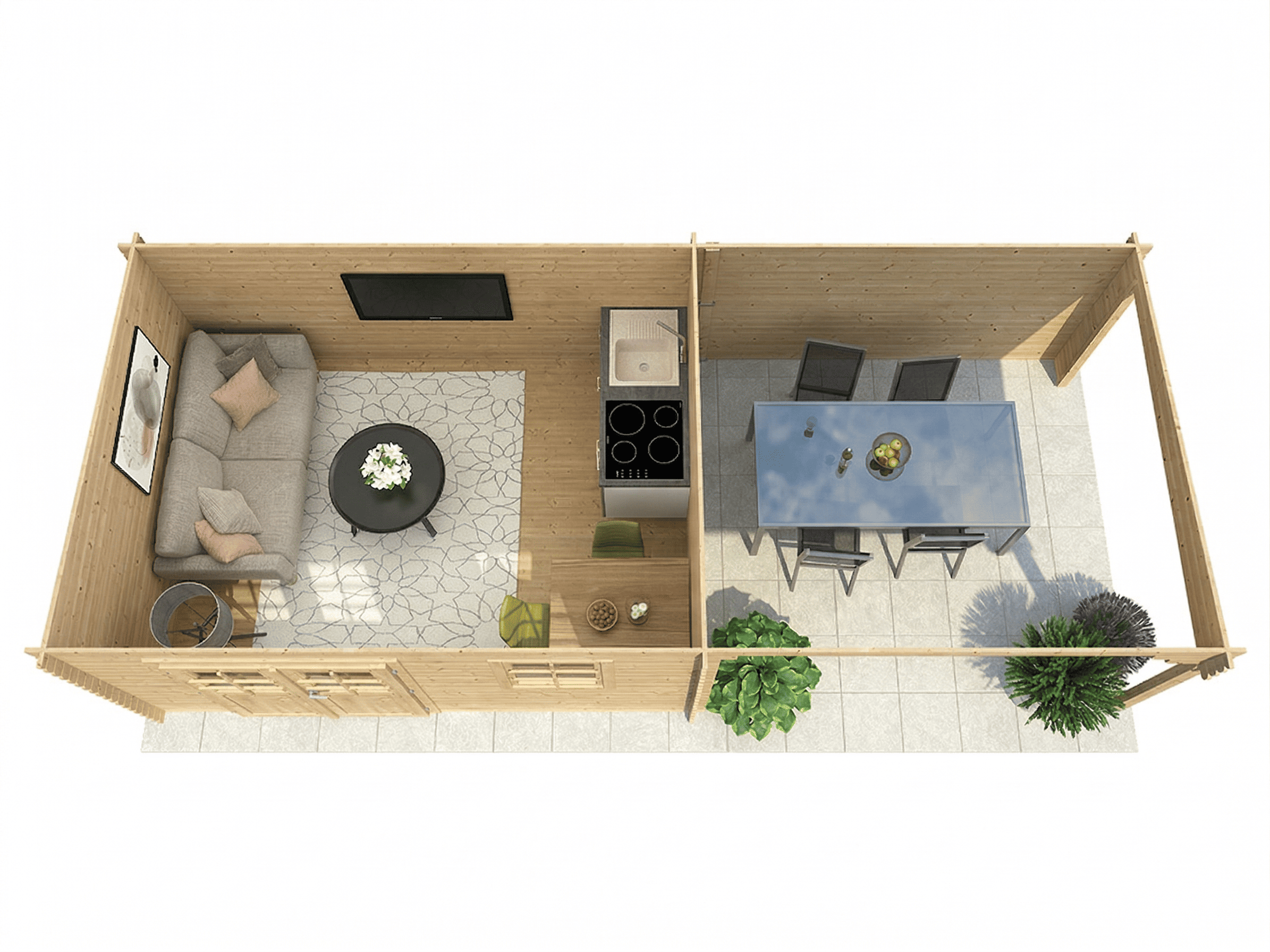 Das Gartenhaus wird ohne Fußboden geliefert. Einen passenden Fußboden (achte auf die Serienbezeichnung) findest du in unserem Zubehörsortiment.