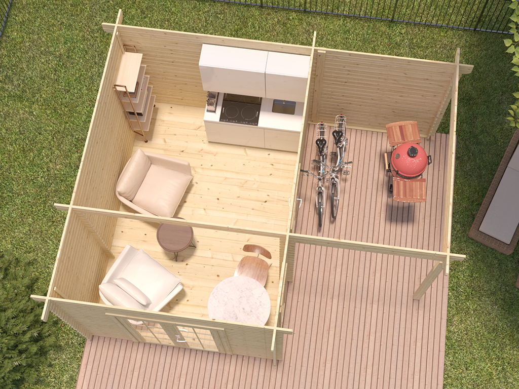 Das Gartenhaus wird ohne Fußboden geliefert. Einen passenden Fußboden (achte auf die Serienbezeichnung) findest du in unserem Zubehörsortiment.