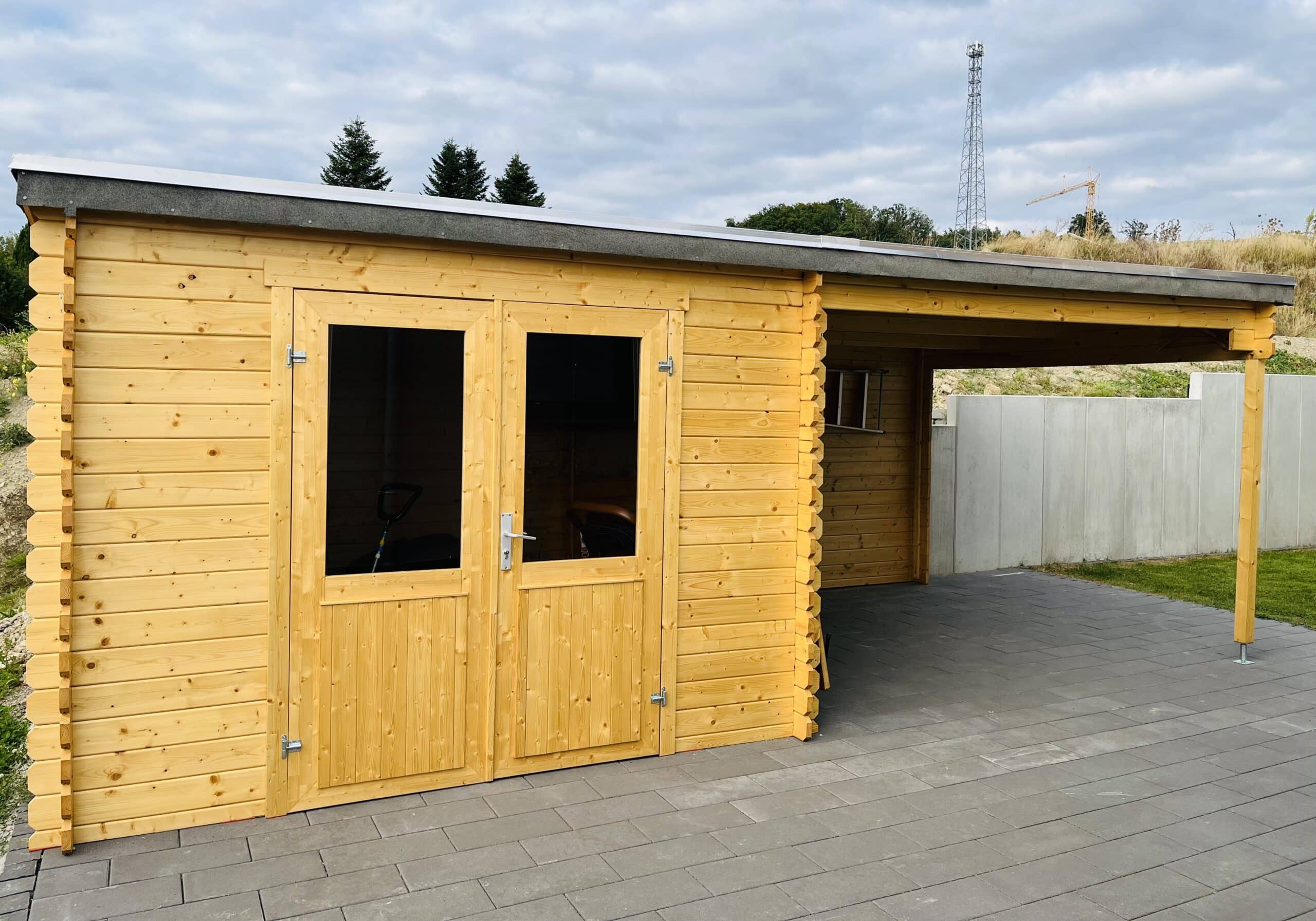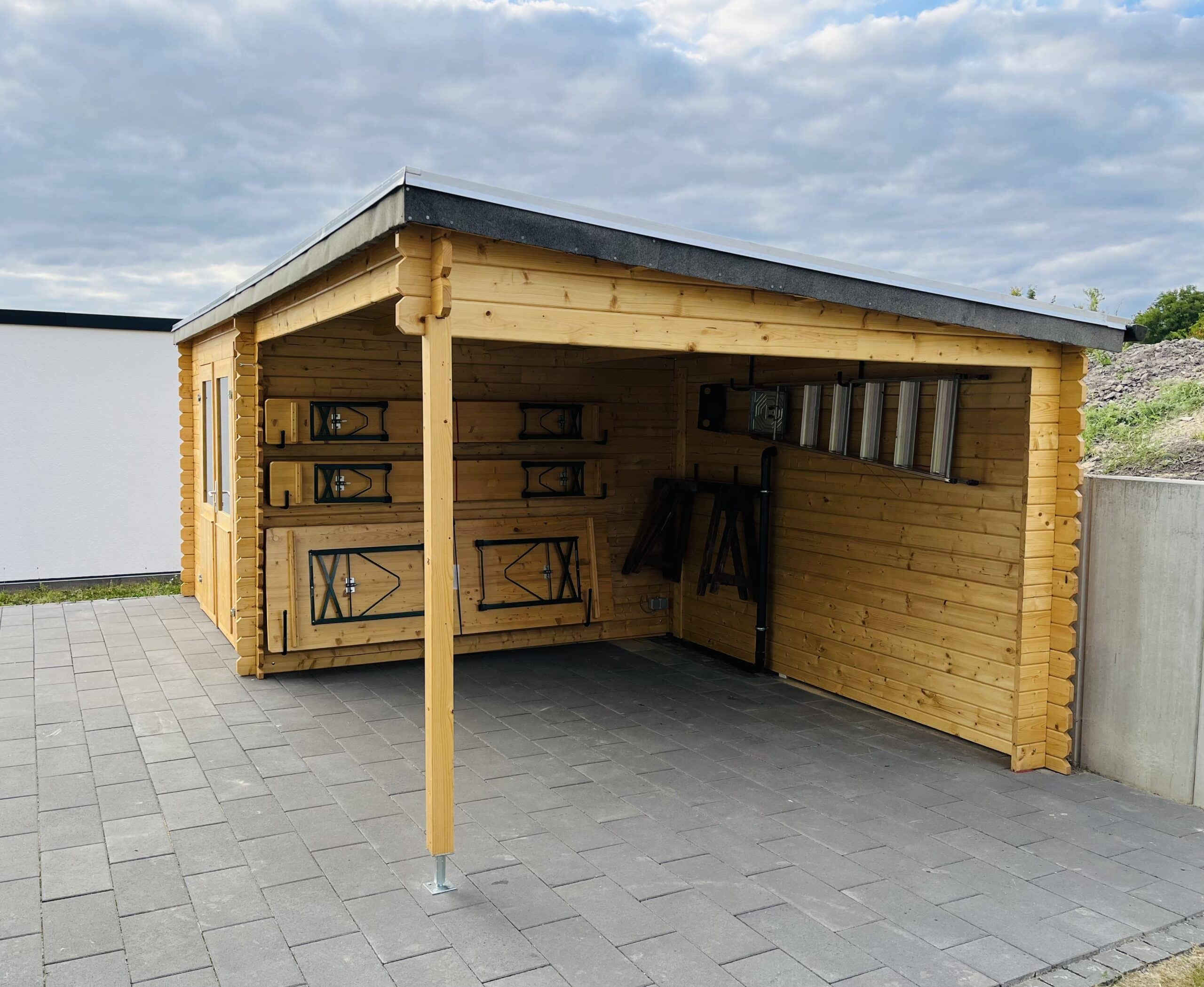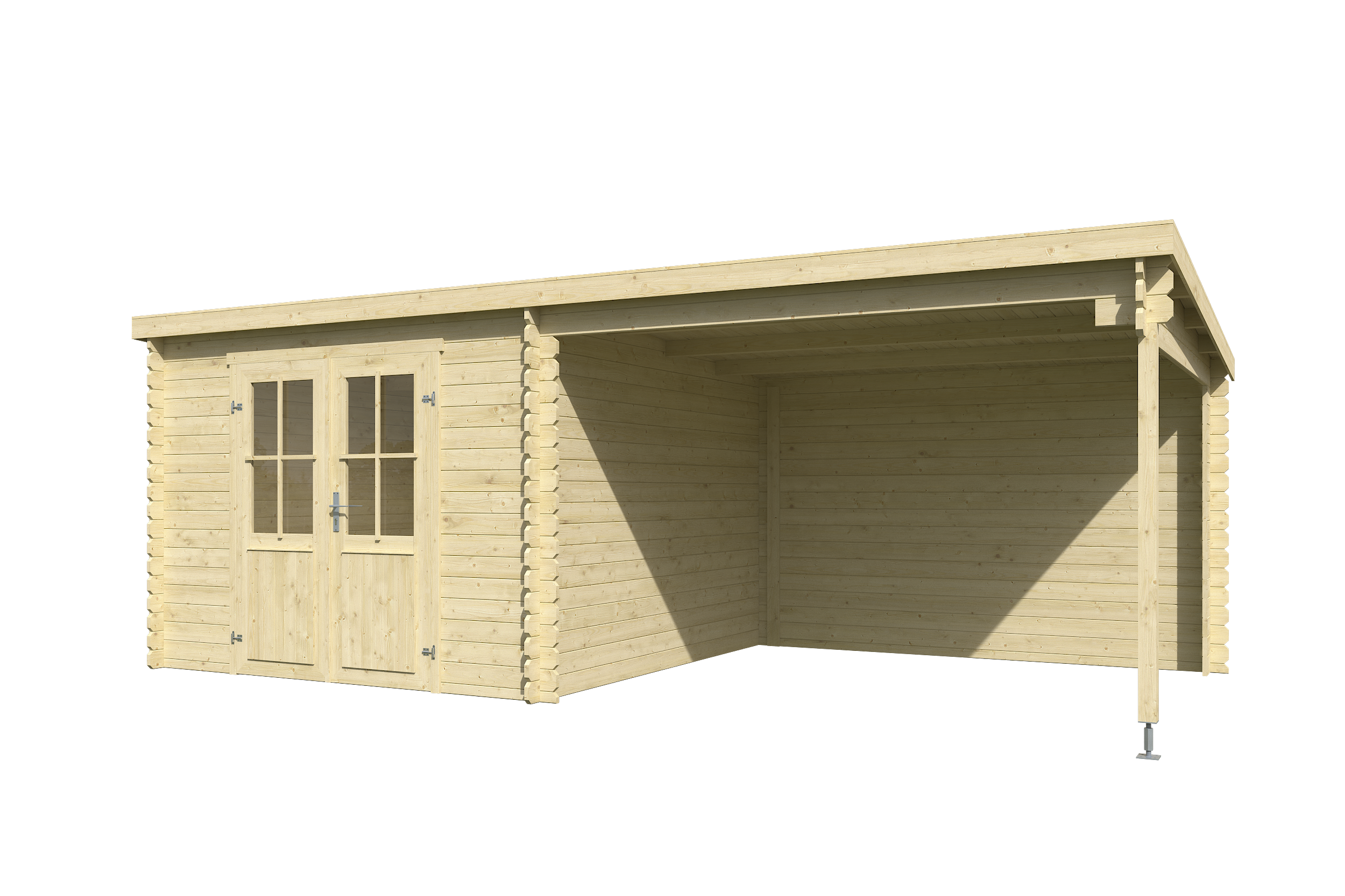 Gartenhaus Blockbohlenhaus Orlando Exklusiv 28 mm naturbelassen mit 3 m Anbau
