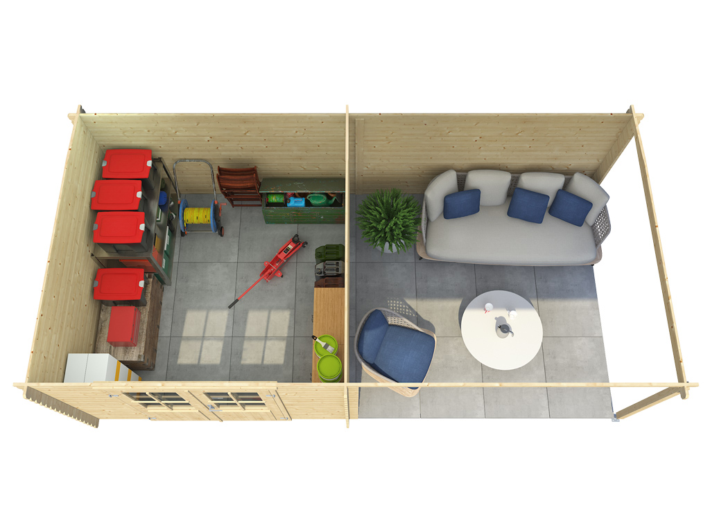 Das Gartenhaus mit Anbaudach und Rückwand ist sehr vielseitig. Der durch das Anbaudach geschaffene zusätzliche Stauraum eignet sich optimal als Lagerplatz für Gartenutensilien oder als Sitzbereich zum gemütlichen Verweilen. Dank Überdachung und integrierter Rückwand sind Geräte und Gartenmöbel optimal vor Wind und Wetter geschützt.
