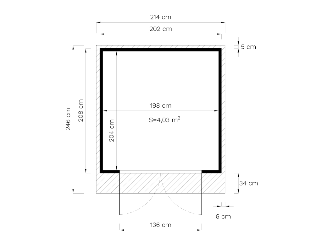| Außenmaß inkl. Dachüberstand (B x T): | 214 x 246 cm |
