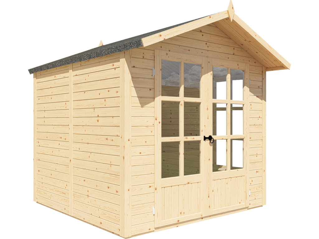 Das hochwertig gearbeitete Gartenhaus zeichnet sich durch sein ausgesuchtes erstklassiges Fichtenholz aus. Fichte ist besonders langlebig und robust, was für die notwendige Stabilität sorgt. Außerdem überzeugt die Holzart mit geringem Gewicht, einer leichten Verarbeitung und hoher Elastizität.