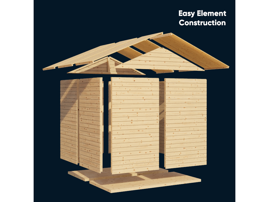 Dank der Elementbauweise ist dein Gartenhaus besonders schnell und einfach montiert. Bei dieser Bauweise bestehen die Wände nicht aus einzelnen Bohlen, sondern aus bereits vorgefertigten Wandelementen, die sich aus einem Holzrahmen und bereits miteinander befestigten Profilhölzern zusammensetzen. Diese Wandelemente werden einfach miteinander verschraubt, das vorgefertigte Dachelement aufgesetzt und schon kann man sich an diesem praktischen Gartenhaus erfreuen! Eine individuelle Gestaltung bieten zudem Türen und Fenster, die durch das Austauschen einzelner Wandelemente eingebaut werden können.