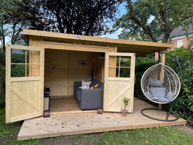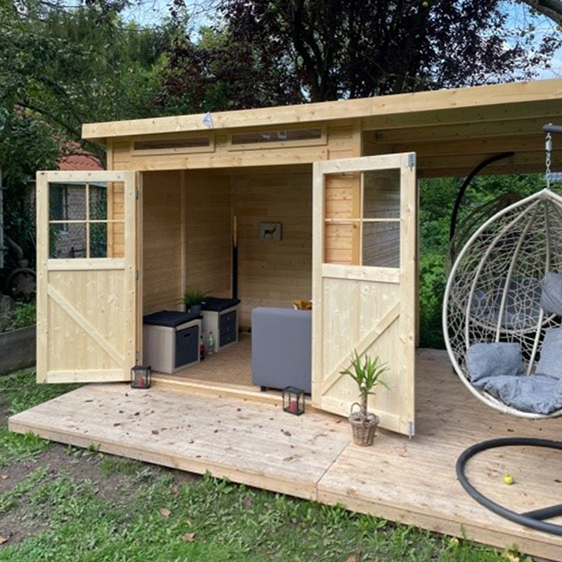 Das naturbelassene Holz sorgt für ein natürliches und zeitloses Aussehen. Außerdem ermöglicht Dir das unbehandelte Holz, das Äußere des Gartenhauses ganz nach Deinen eigenen Wünschen zu gestalten.