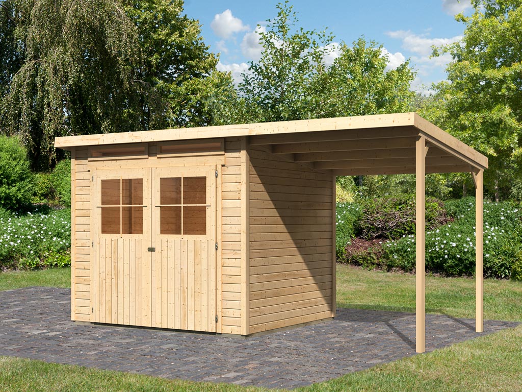 Gartenhaus Marksburg 3 mit Anbau natur Gartenhaus Marksburg 3 mit Anbau natur