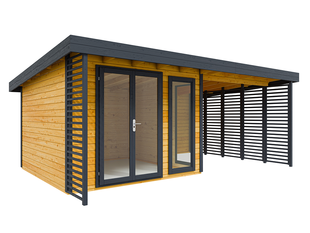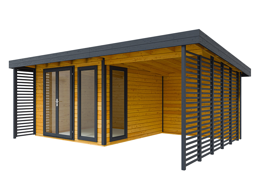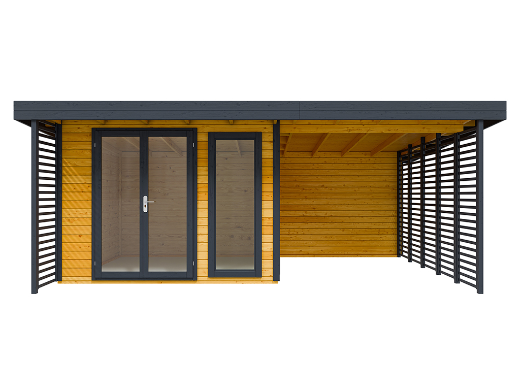 Gartenhaus Homeoffice Arvo 28 mm Eiche-Anthrazit mit 250 cm Anbau