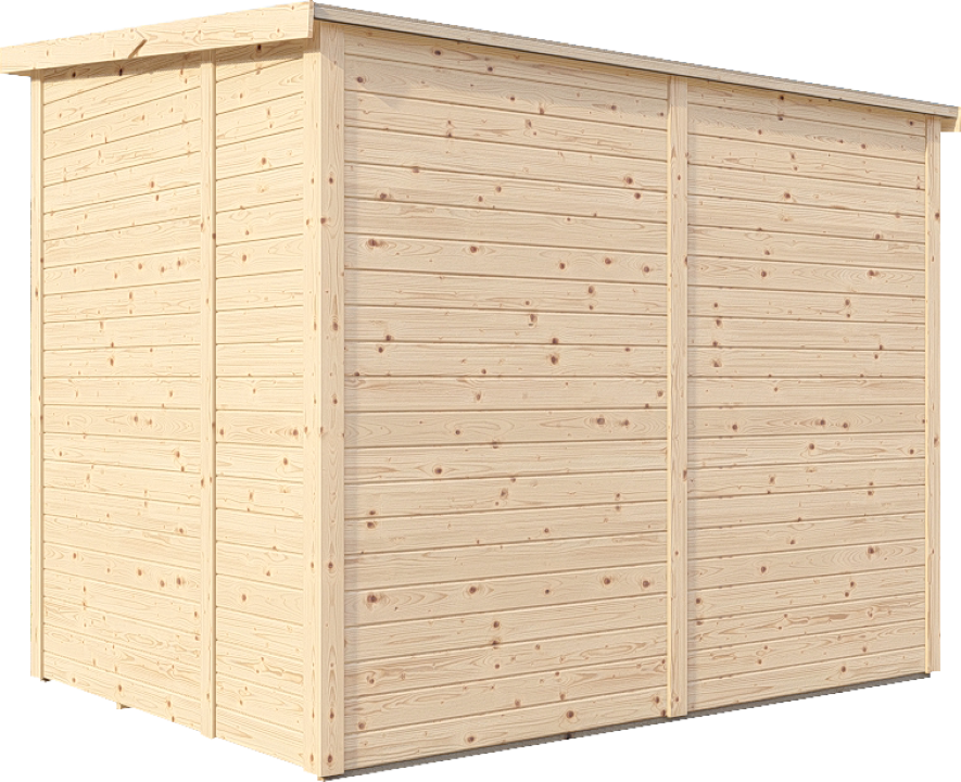 Die Grundfläche des Gartenhauses beträgt 4,27 m². Das Sockelmaß liegt bei 238 × 180 cm (B x T). Eine optimale Raumnutzung wird dank einer Firsthöhe von 210 cm gewährt.