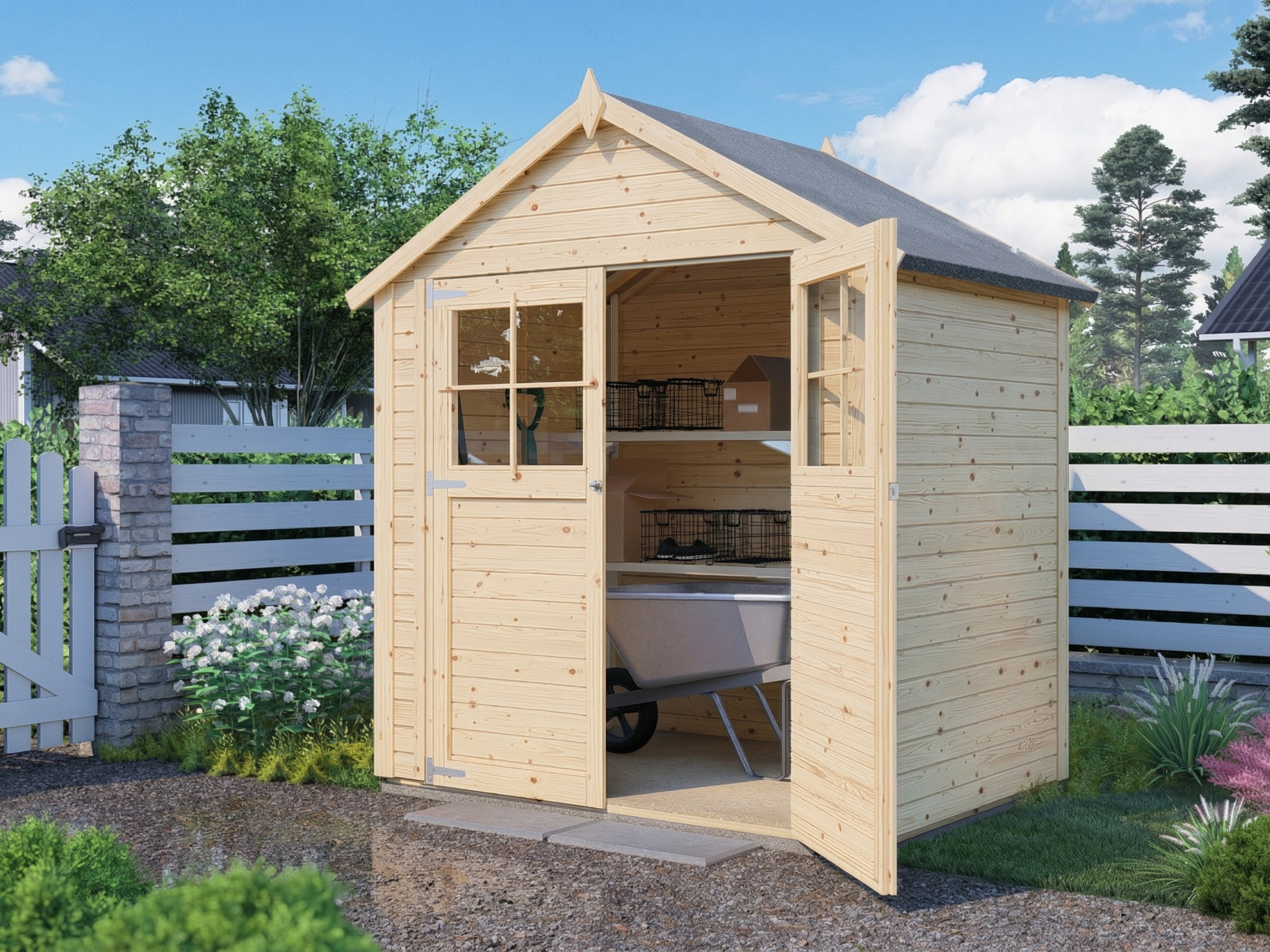 Klein, aber fein – dieses Gerätehaus bietet ausreichend Stauraum, ohne dabei viel Platz im Garten einzunehmen. So kannst du deine Geräte ganz leicht witterungsgeschützt und diebstahlsicher verstauen.