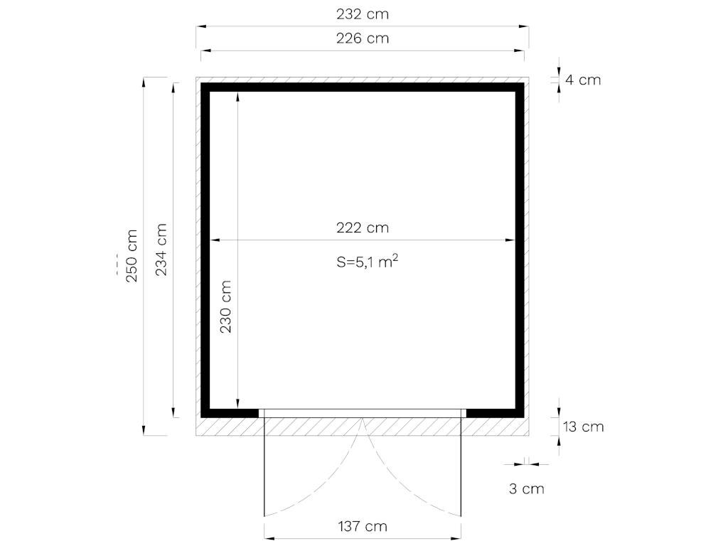 | Außenmaß inkl. Dachüberstand (B x T): | 232 x 250 cm |