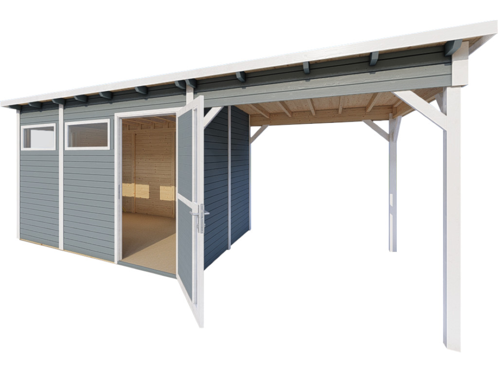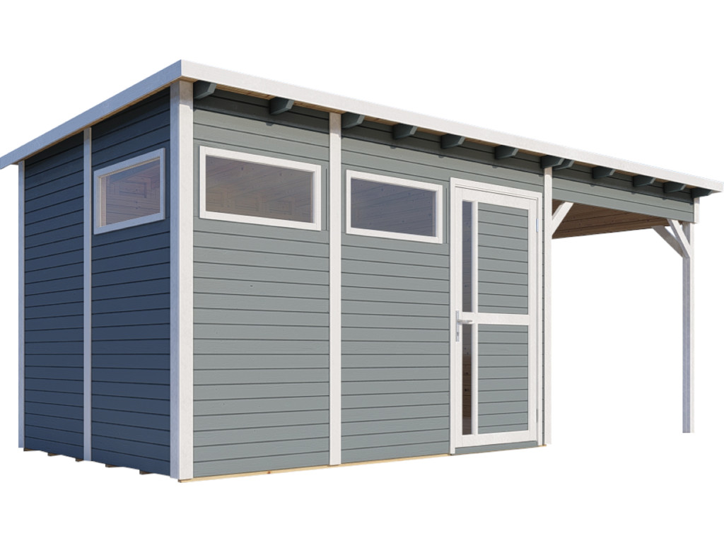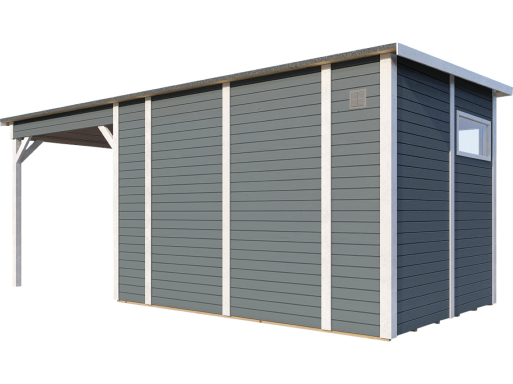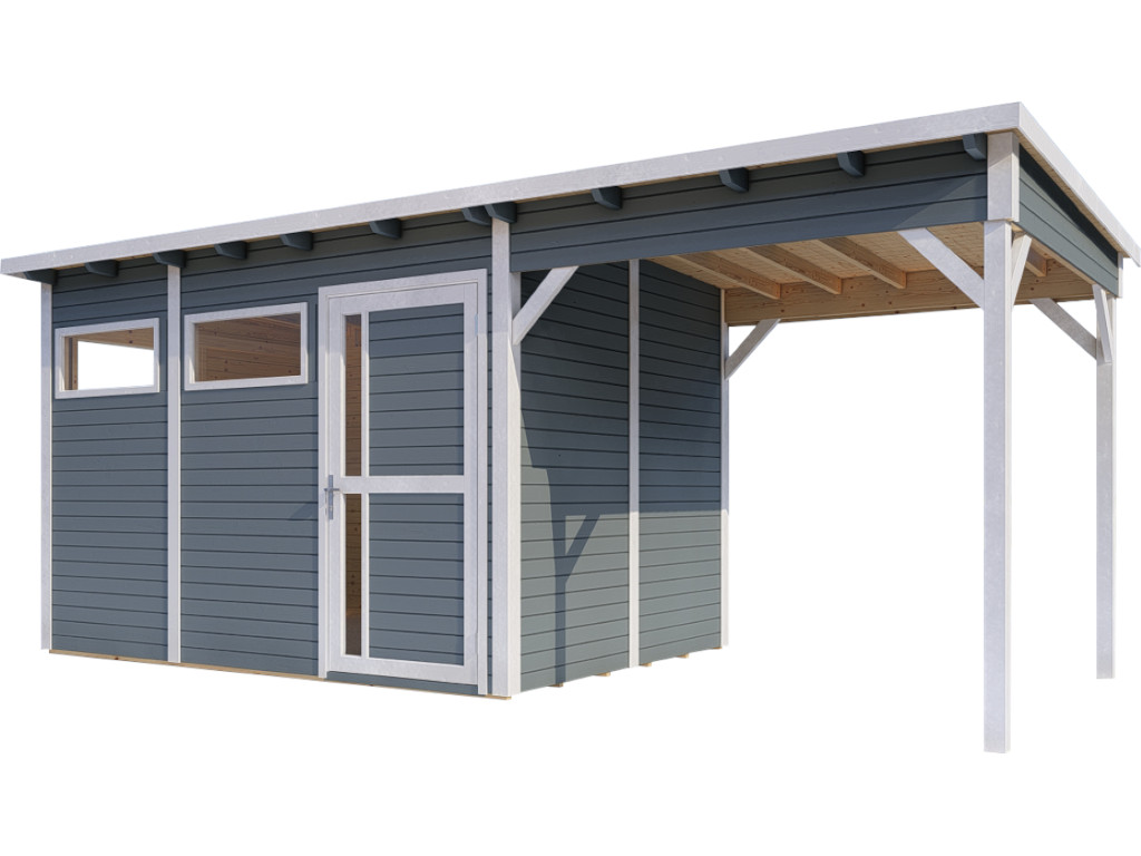 Gartenhaus Punta 3 mit Anbau 19 mm hellgrau
