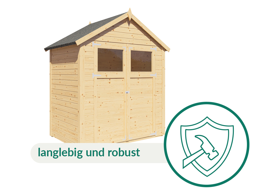 Das hochwertig gearbeitete Gartenhaus zeichnet sich durch sein ausgesuchtes erstklassiges Fichtenholz aus. Fichte ist besonders langlebig und robust, was für die notwendige Stabilität sorgt. Außerdem überzeugt die Holzart mit geringem Gewicht, einer leichten Verarbeitung und hoher Elastizität.