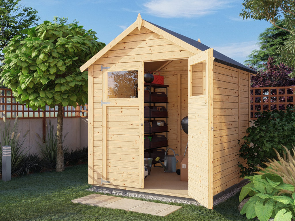 Das naturbelassene Holz sorgt für ein natürliches und zeitloses Aussehen. Außerdem ermöglicht dir das unbehandelte Holz, das Äußere des Gartenhauses ganz nach deinen eigenen Wünschen zu gestalten.