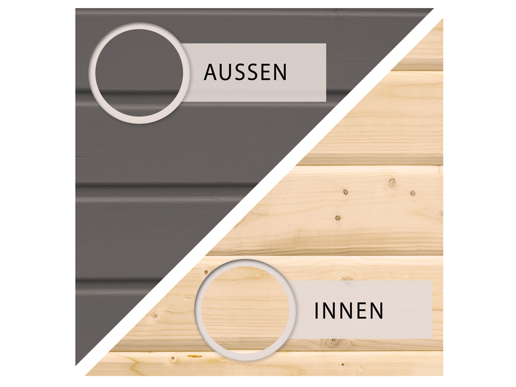 Mit einer Wandstärke von 28 mm ist das robuste Gartenhaus der perfekte Aufenthaltsort im Sommer. Aufgrund wärmedämmender Eigenschaften des hochwertigen Holzes ist es im Inneren des Gartenhauses während der prallen Sommerhitze 3-5 Grad kühler, in den kälteren Abendstunden 3-5 Grad wärmer als draußen. So hast Du im heißen Sommer immer ein schattiges Plätzchen. Dank der soliden Wandstärke verwittert das Holz nicht so schnell und bleibt langlebig und stabil.