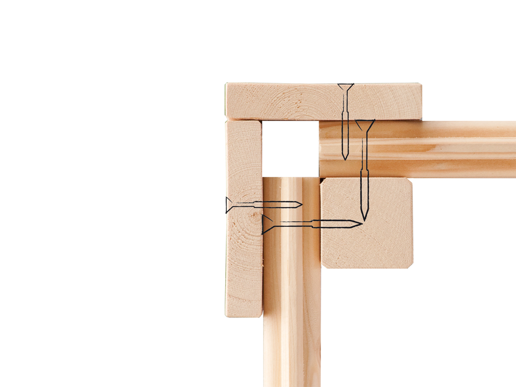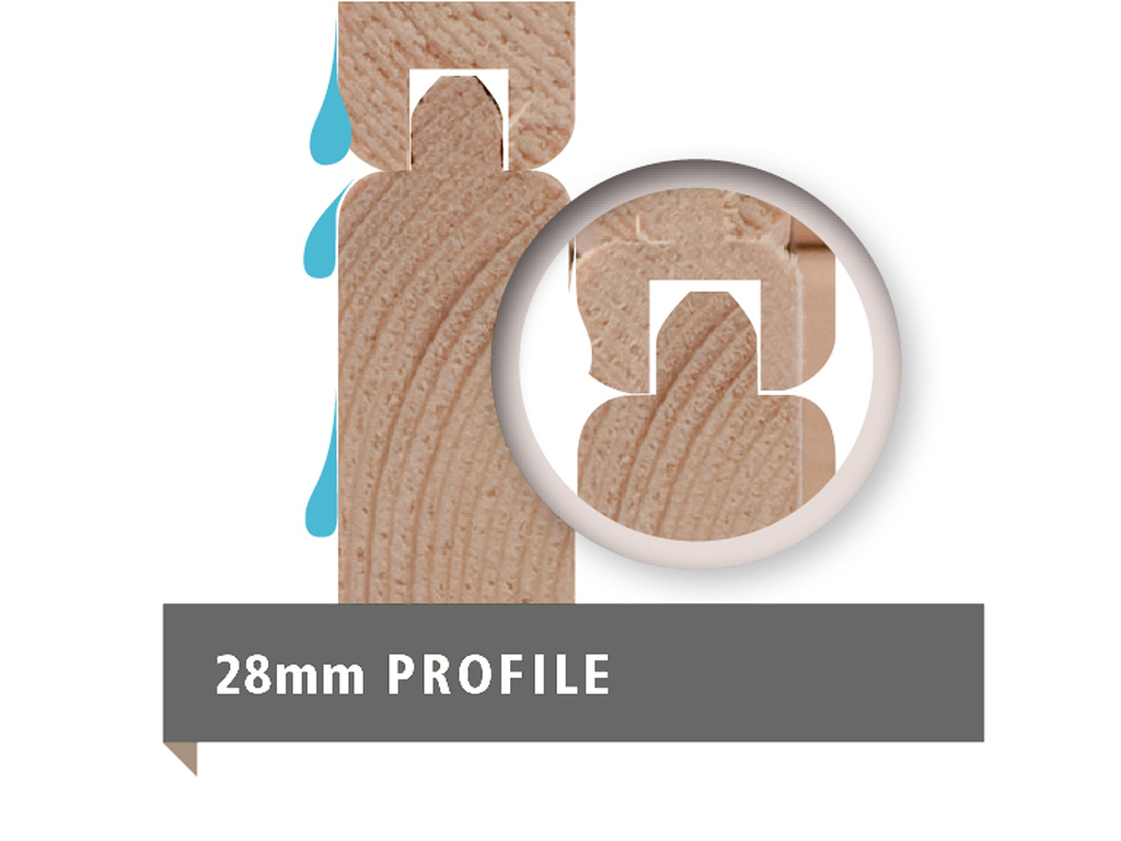 - Die Dachkonstruktion: 16 mm starkes Massivholzdach aus gehobelten Nut- und Federbrettern.