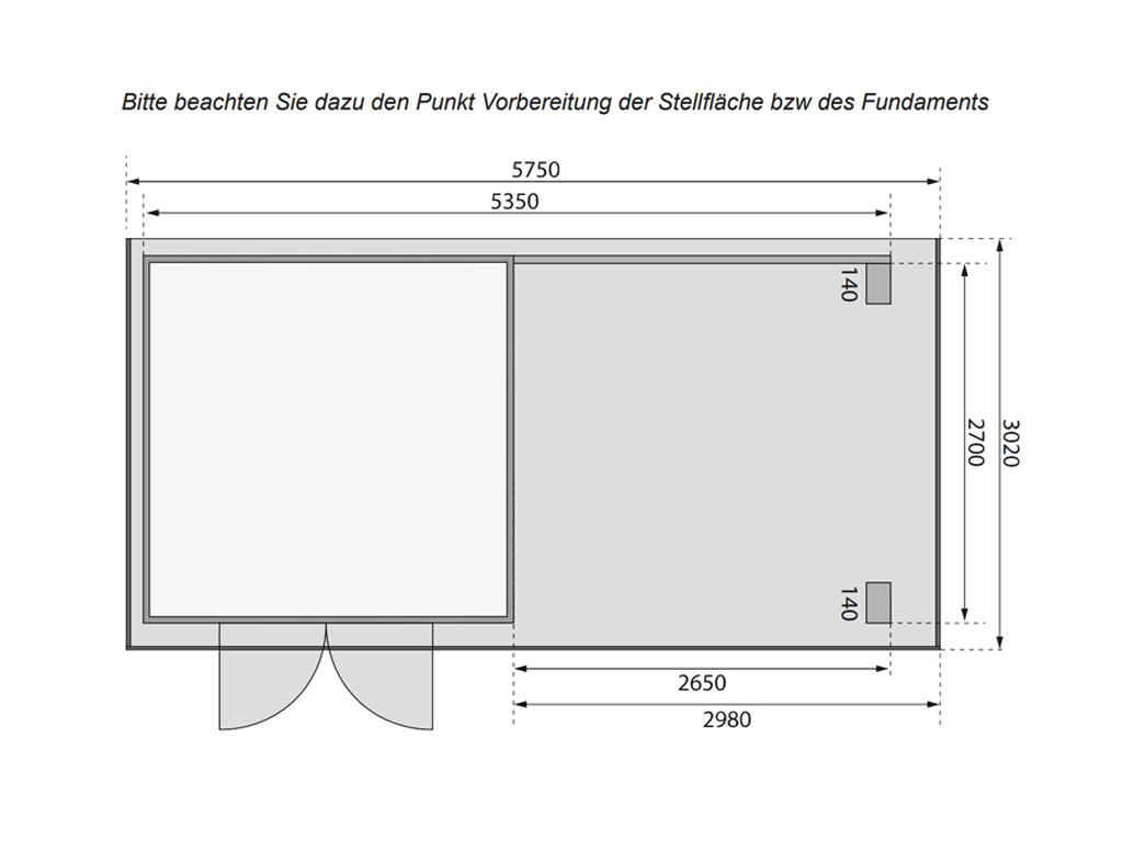 | Außenmaß inkl. Dachüberstand (B x T): | 575 x 302 cm |