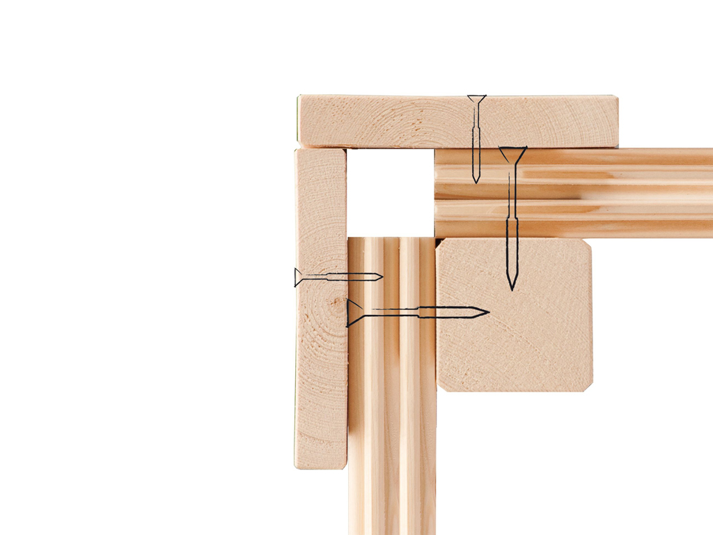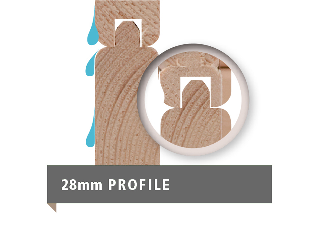 - Die Dachkonstruktion: 16 mm starkes Massivholzdach aus gehobelten Nut- und Federbrettern.